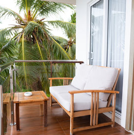 Take in the beauty of our beach and gardens from your room, with natural light pouring in during the day and cozy beach umbrellas just outside.